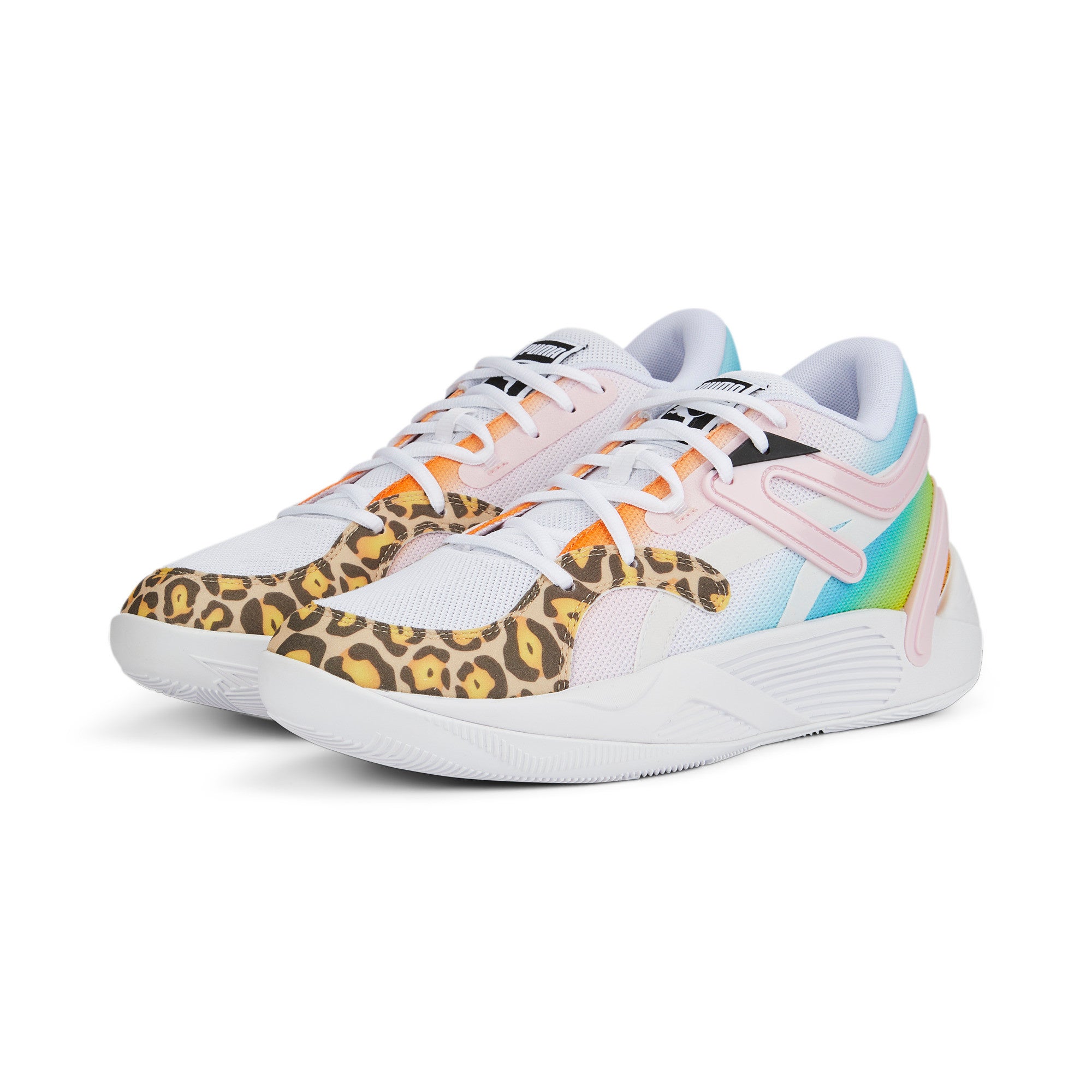 「TRC BLAZE COURT TOKYO HARAJUKU」は、2006年にライフスタイルシューズとして発表された「BLAZE OF GLORY(ブレイズ オブ グローリー)」がベースとなっているバスケットボール用シューズです。アッパーにはメッシュ素材にシンセティックスウェードの補強パーツを使用し、足のホールド感を強化するとともに、さらに安定感を生み出すTPUサイドウォールを搭載しています。ミッドソールには、軽量でクッション性と反発性を兼ね備えた“ProFoam(プロフォーム)”を採用し、アウトソールにはグリップ力の高いフルラバーを採用しています。特徴的なカラーリングは、ファッションの中心地である原宿のストリートで見られるユニークな柄や鮮やかな色彩からインスピレーションを受けデザインしています。