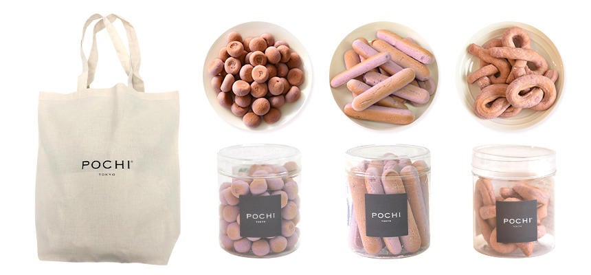 POCHIのロゴが入った、シンプルなデザインのオリジナルエコバック(36×35cmと大きめサイズ)も付いているので、プレゼントにもぴったりです。