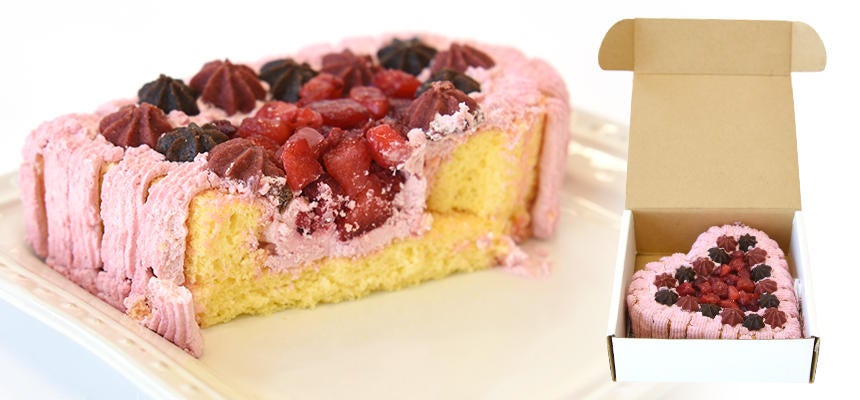 ベリーたっぷりのハート型ケーキと、バレンタインカラーで揃えたトリーツセット(いずれも数量限定)