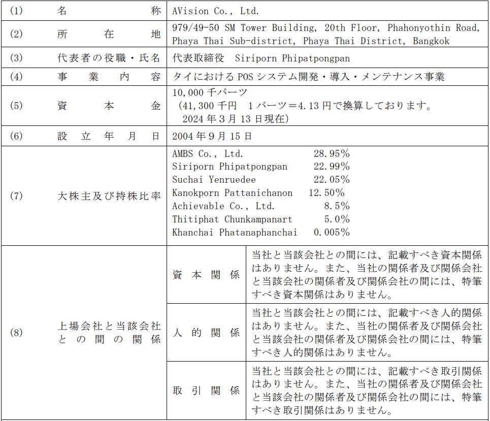 3.異動する子会社(AVision Co., Ltd.)の概要