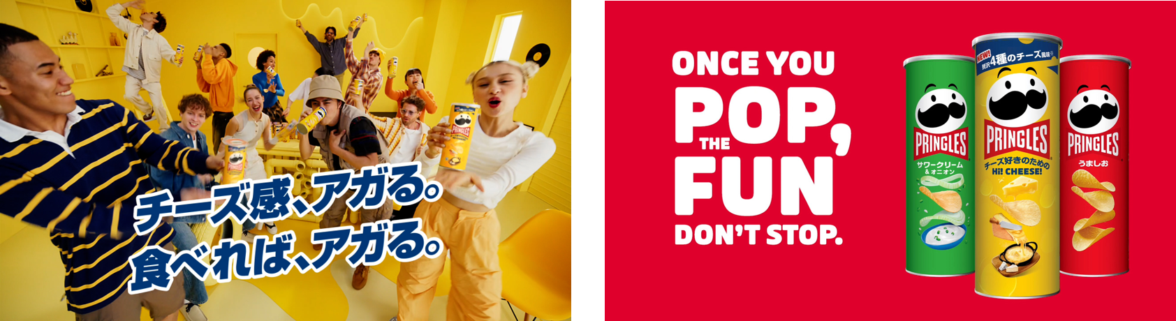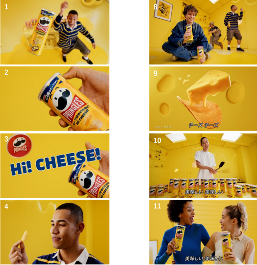 プリングルズは、今年2024年に日本発売30周年を迎えました。人々のあそび心や好奇心をくすぐることをブランド使命に掲げるプリングルズが、日本発売30周年のタイミングで新発売する「プリングルズ Hi! CHEESE!」は、4種類のチーズの豊かな風味*でチーズ好きの気分がアガる、チーズ好きのためのチーズポテトチップスです。新TV-CMは、日本発売当初、プリングルズを多くの方に知っていただくきっかけとなったTV-CM「Pop in the park」からインスピレーションを受けた、プリングルズらしい海外感のあるクリエイティブです。チーズ好きが求めるチーズの美味しさや濃厚さを、チーズ感たっぷりの世界観、楽し気な表情、音楽などで表現しました。また、プリングルズを食べた人が思わずリズムに乗ってしまうシーンや、パッケージを使ったPOPな演奏、FUNな雰囲気にご注目ください。