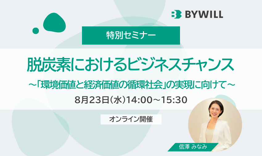 「脱炭素におけるビジネスチャンス 〜『環境価値と経済価値の循環社会』の実現に向けて〜」信澤みなみ氏講師の特別セミナーを8/23(水)開催