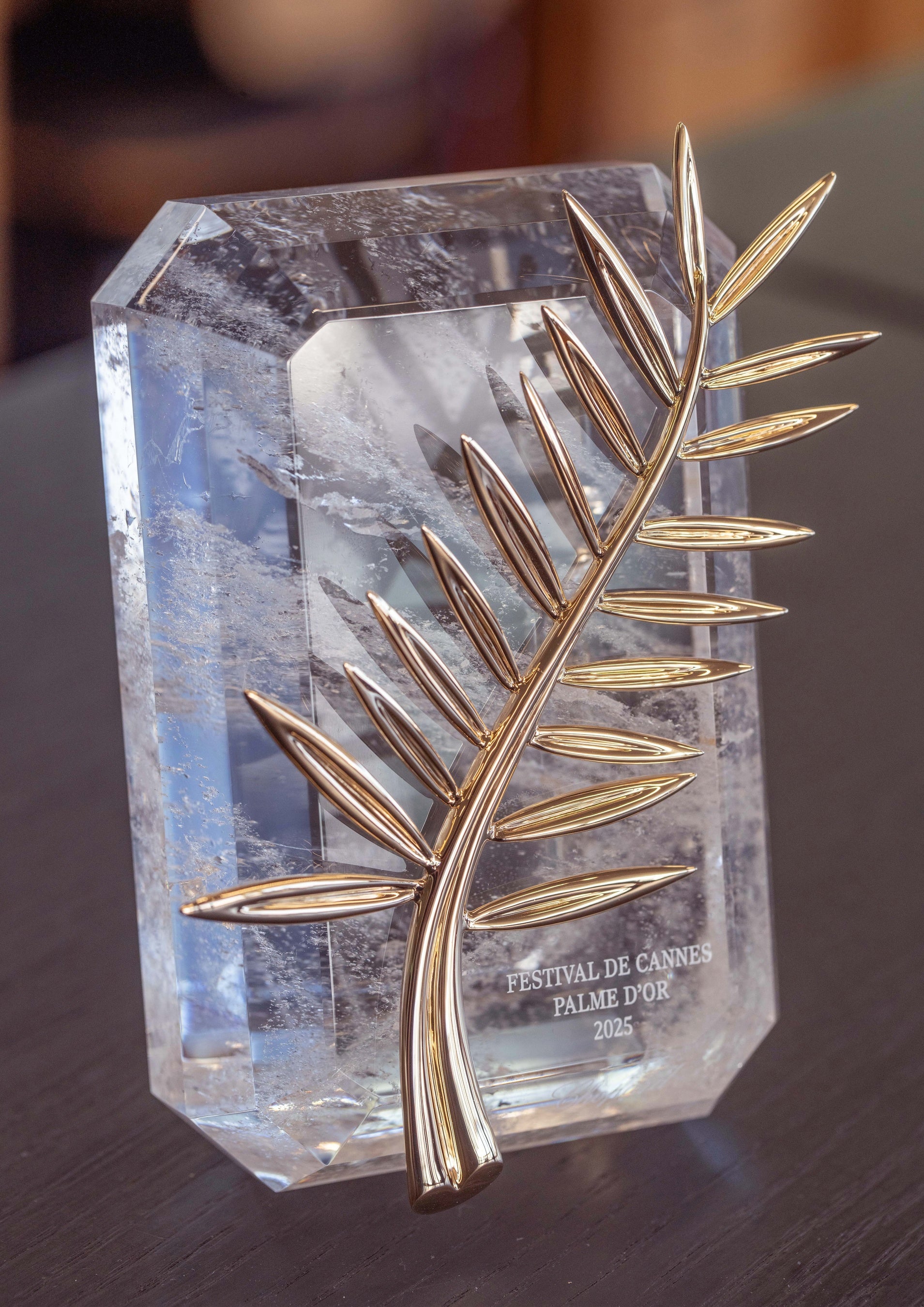 カンヌ国際映画祭が初開催された1946年から1954年までの間、最高賞は「グランプリ(Grand Prix du Festival International du Film)」と呼ばれており、毎年異なるアート作品をトロフィーとして授与していました。1954年には、恒久的かつ一目でそれとわかるトロフィーを創作するために、ジュエラー数社によるコンペティションが開催され、宝石職人であり画家・彫刻家でもあるリュシエンヌ・ラゾン(Lucienne Lazon)が、カンヌ市の紋章からインスピレーションを得て最初のトロフィーを製作し、1955年第8回の映画祭で、『マーティ』のデルバート・マン監督に初めてこのトロフィーが授与されました。1964年から1974年までは、最高賞の名称が再び「グランプリ」に戻され、パルム・ドールの授与はなくなりましたが、その後映画祭は、再び最優秀映画作品に贈られる象徴的な賞として、パルム・ドールを復活させました。1980年代初頭には、パルム・ドールにピラミッド型の台座が採用され、1992年にジュエラーのティエリー・ド・ブルケニー(Thierry de Bourqueney)がリデザインを行い、ハンドカットのクリスタル製のピラミッド型台座に、19枚の小葉をあしらったデザインを完成させました。