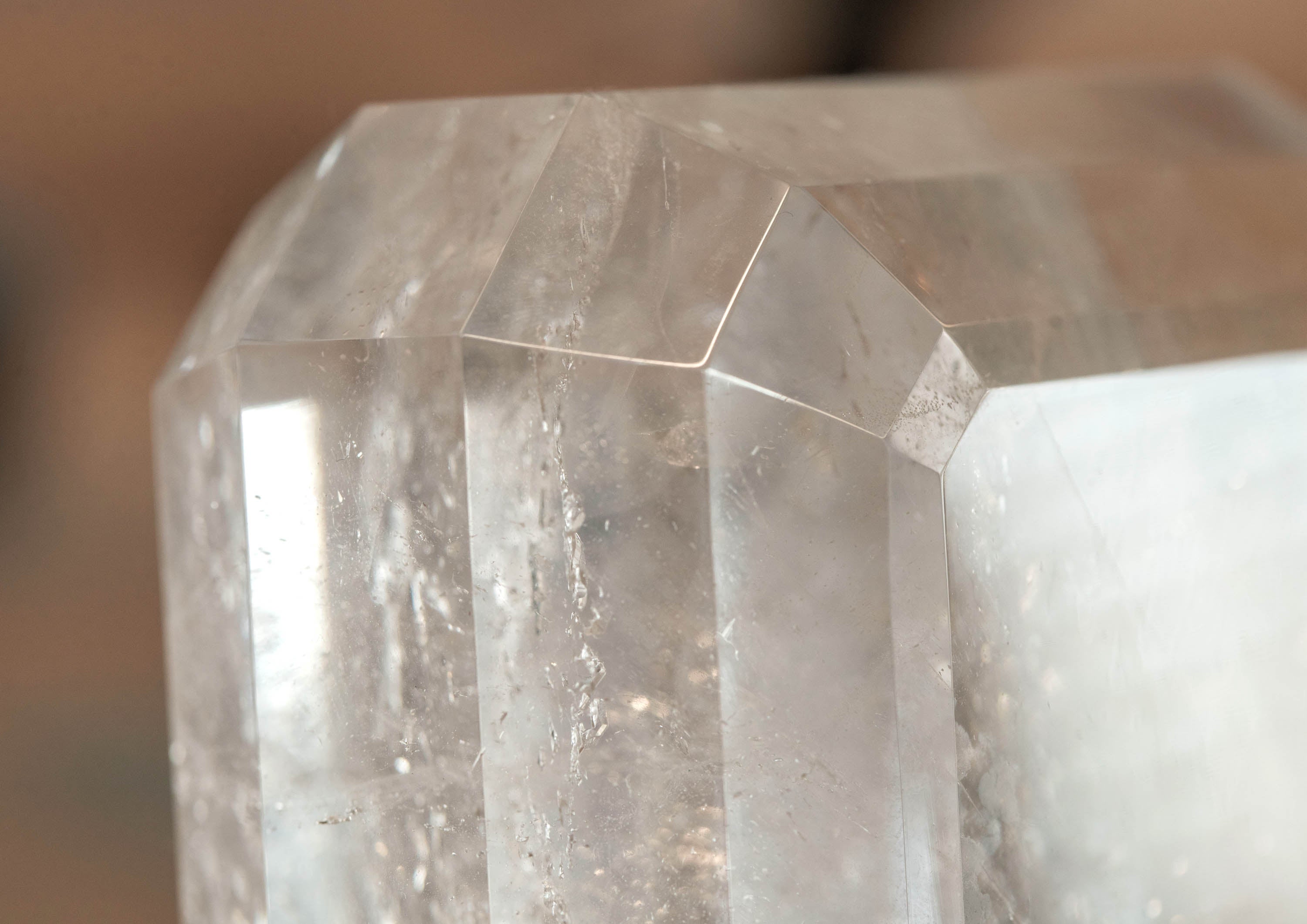 それから数年後、キャロライン・ショイフレによってパルム・ドールの新章が幕開けします。「すべては1997年、当時カンヌ国際映画祭の会長であったピエール・ヴィオ氏に出会った時から始まりました。私は彼のオフィスに置かれていたパルム・ドールをじっと見つめていました。それは、プレキシガラスのピラミッドの上にヤシの葉のオブジェが据えられたものでした。私が彼に、『自分はジュエリーデザインの仕事をしている』と伝えると、彼は『それなら、パルム・ドールのリデザインをしてみる気はないか?』と言ってくれたのです。それは私にとって素晴らしい挑戦であり、極めて栄誉な申し出でした」と、キャロラインは当時を振り返ります。パルム・ドールを再解釈するにあたって、茎の先端の断面にショパールの象徴である“小さなハート”のフォルムをあしらいました。全体的に一新されたトロフィーデザインは、モダンな要素を取り入れながらも、クロワゼット通りに並ぶヤシの木とカンヌ市の紋章への敬意を忘れませんでした。こうして、“映画界の聖杯”は、ダイヤモンドのように手作業でカットされたロッククリスタルのクッションの上に、18Kエシカルイエローゴールド製の19枚の小葉が美しく配され、より立体的で奥行き感のある真の宝石となりました。