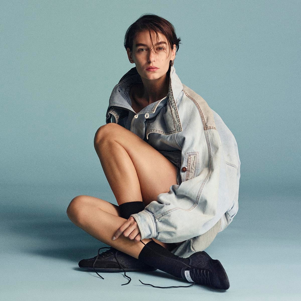 フェミニンで繊細なレース、スポーティなスニーカーを軽やかで幻想的な印象に