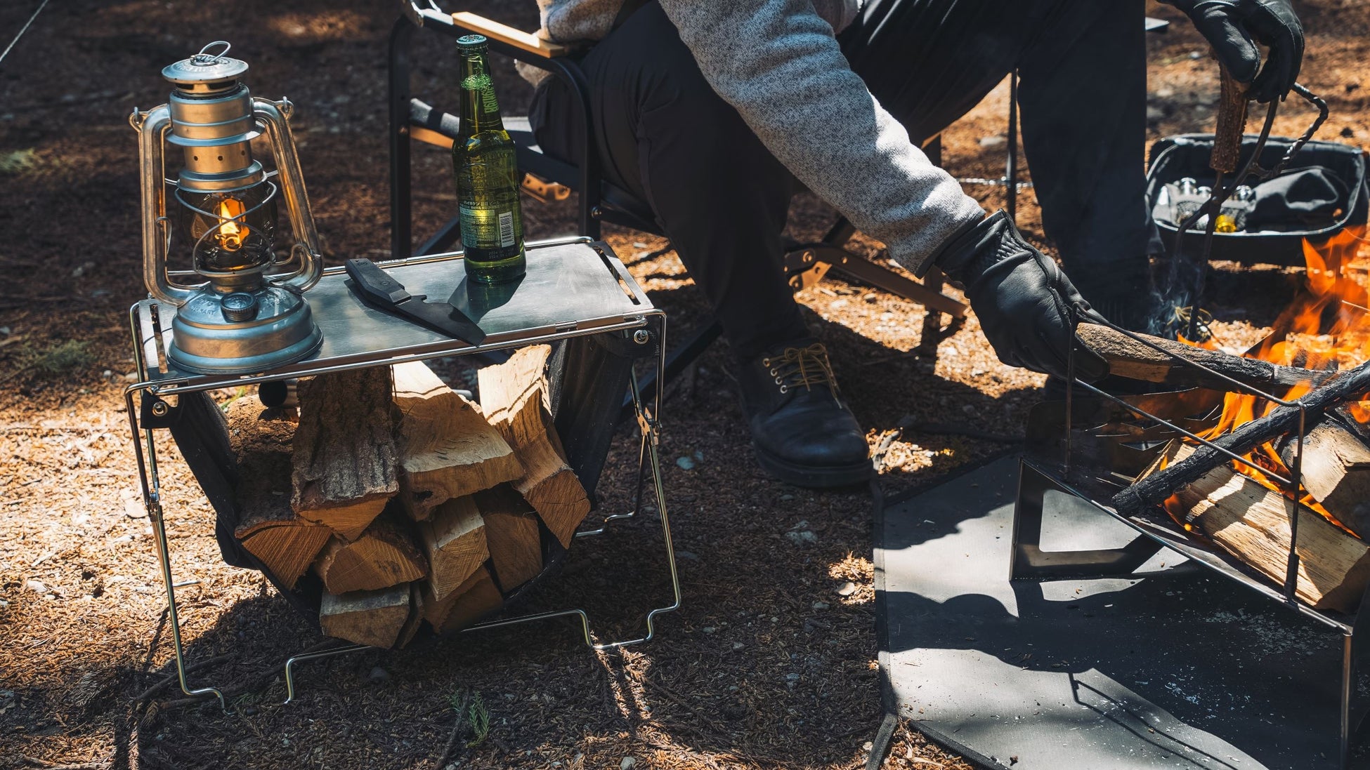 薪ホルダーログキャリーとしても使えるコードユニットのオプションアイテムです。コードユニットに引っ掛けるだけで取り付け可能で、薪スタンドとして使用でき、地面の湿気からも守ってくれます。薪ホルダーとしてはもちろん、トップボードと一緒に使うことで、薪置き兼サイドテーブルとして焚き火を快適に楽しめます。