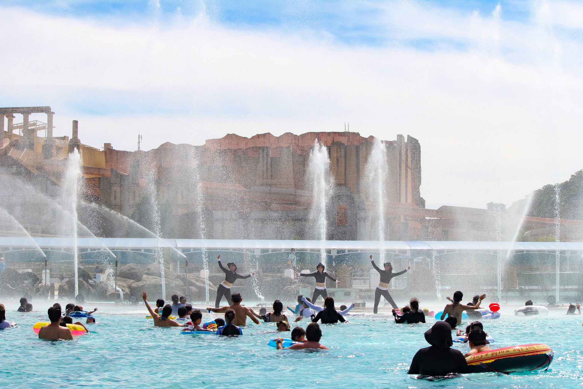 「ルナポルト」エリアで行われる、プールに入りながら楽しめるエアロビクスです。噴水の水しぶきを浴びながら、びしょぬれになって水中エクササイズを楽しめます。
