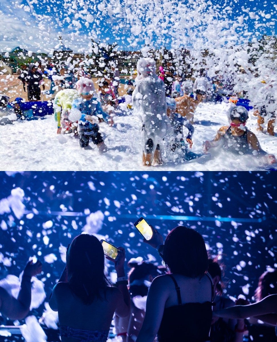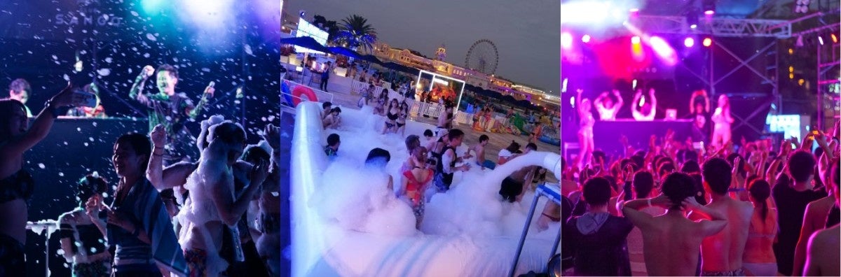 DJの音楽と大量の泡に包み込まれる人気イベント「ラグーナプールパーティ2024」を開催いたします。夜になるとプールがライトアップされ昼とは雰囲気が一変、日焼けを気にせずリゾート気分を楽しめます。