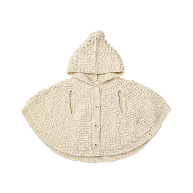 太くやわらかな毛糸がループ状になった、ボリューム感あるニット生地がかわいいポンチョ。