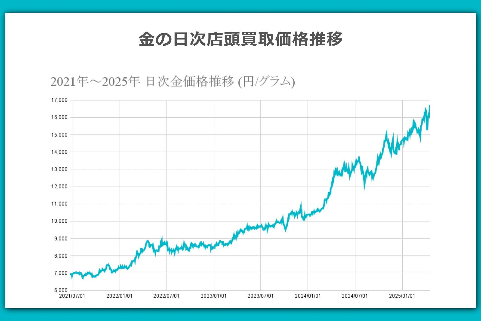 これにより、3月28日には金の価格が1gあたり16,229円を記録し、過去最高値を更新しました。(※2025年3月の最高値)