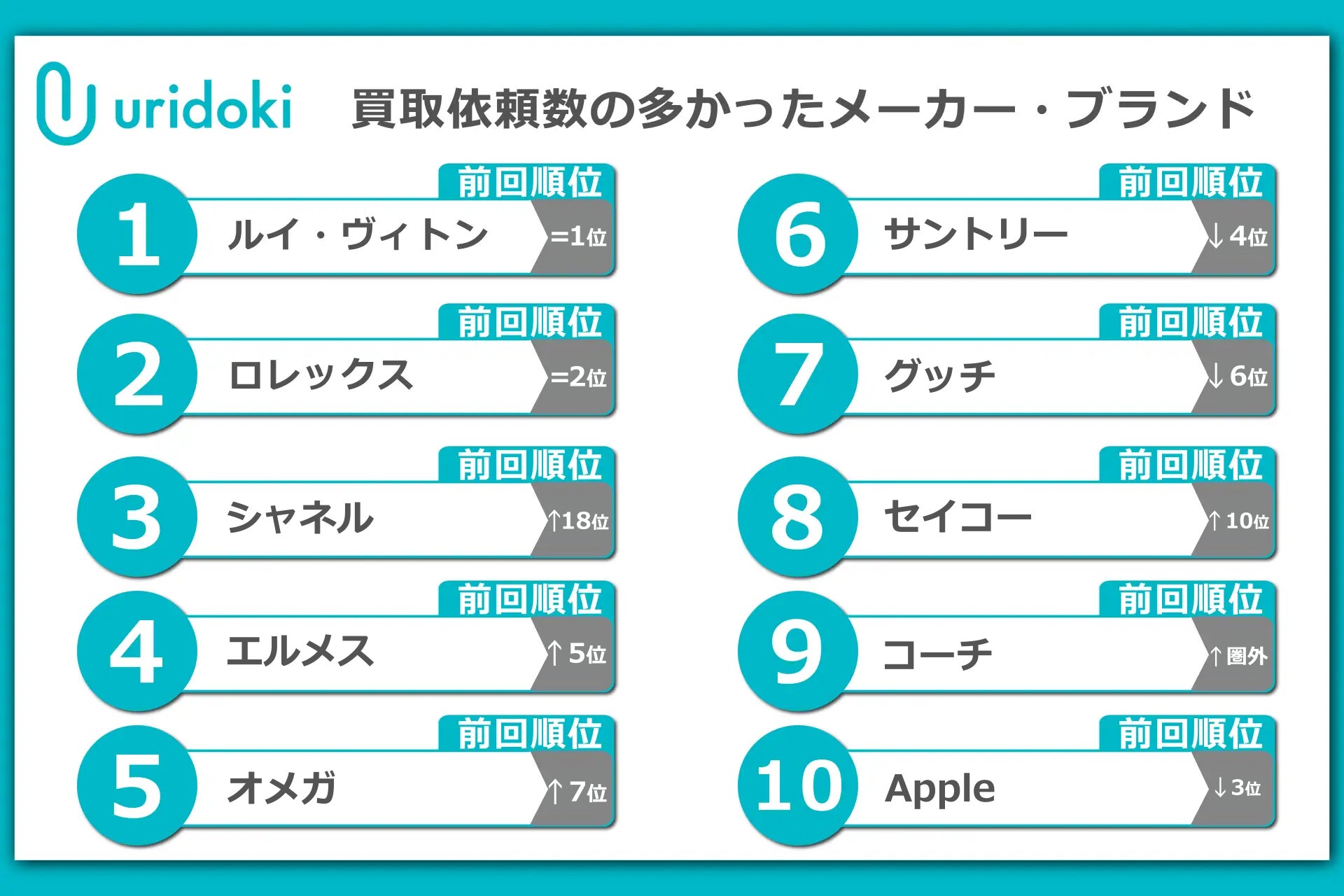※ ブランド名の横に記載されている順位は、2024年7月時点のデータに基づくものです。
