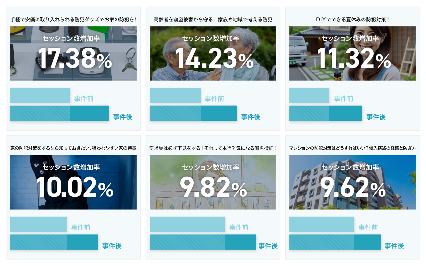 Secualが提供しているオウンドメディア『Secual防犯ナビ』において、簡単にできる防犯対策に関する記事の閲覧数が急増しました。特に「手軽で安価に取り入れられる防犯グッズでお家の防犯を!」という記事は事件発生前と比較すると17.78%の増加率となり、一般家庭でも簡単にできる防犯対策が求められていることがわかります。また、この期間にご購入いただいた方の住居タイプの約8割が一軒家となっており、事件を意識した動向となっていることがわかります。
