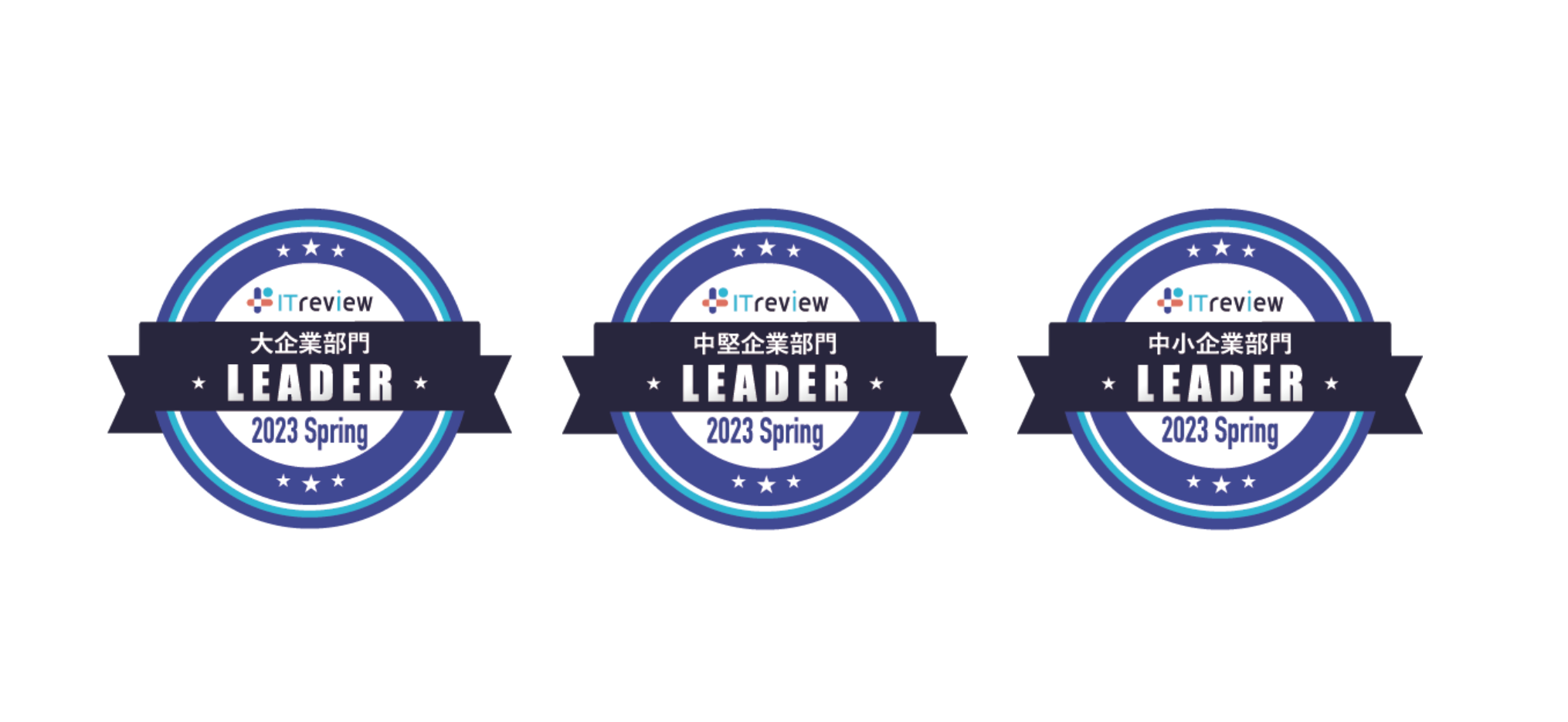 「ITreview Grid Award 2023 Spring」では、ITreviewに集まった約11万件のレビューをもとに、顧客満足度と認知度の双方が優れた製品を「Leader」として表彰、バッジが発行されています。ITreviewのLeaderは、既に多くの利用者から支持を得ている証であり、名誉ある称号とされております。
