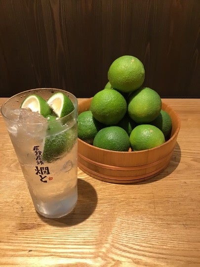 ・原始炭焼 燗と/生搾りかぼすサワー(¥600)
