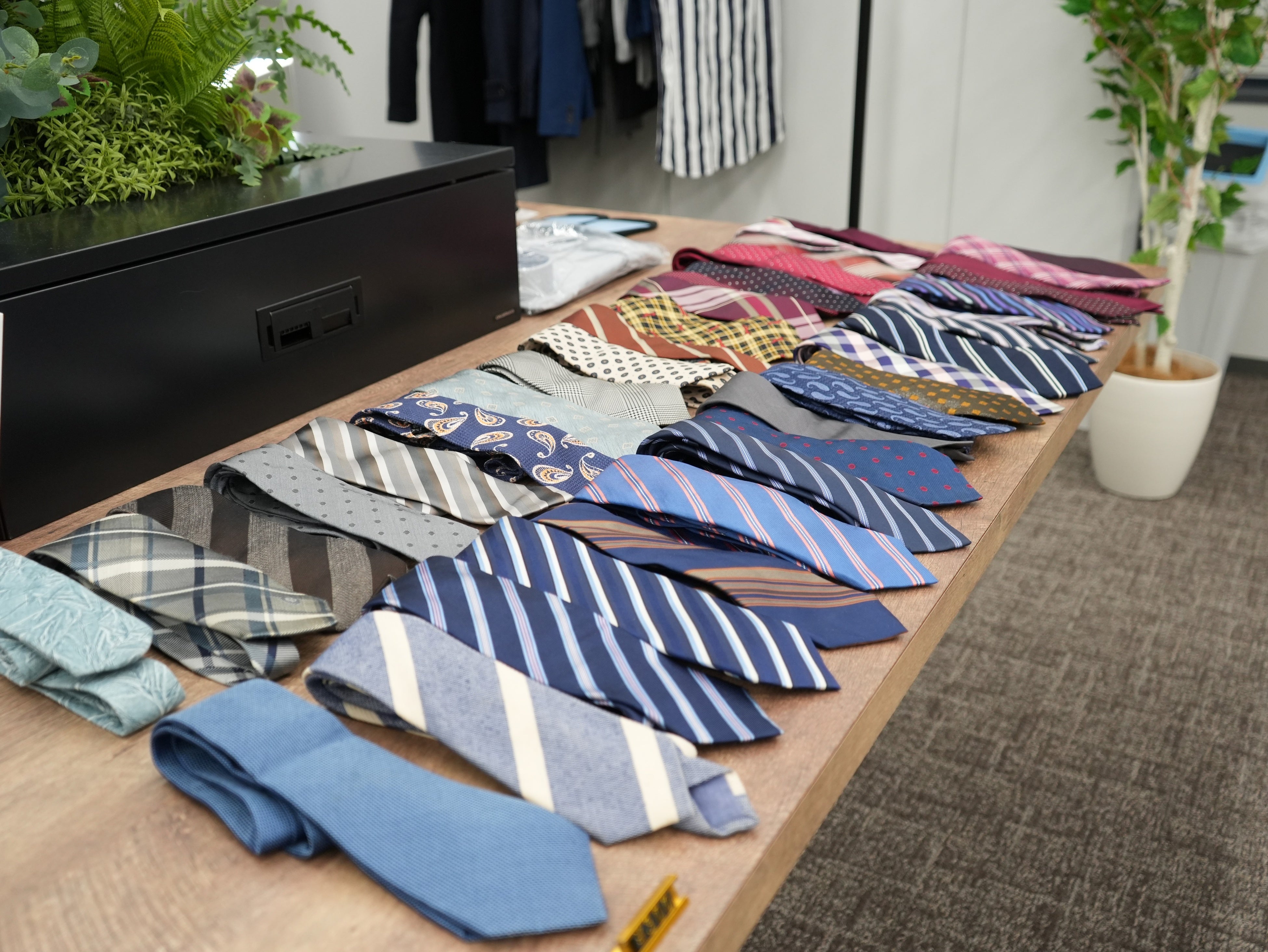 テレワークが進む中で、スーツやネクタイなどをスポットで必要とする社会人の方や若手社員、入社を控えている大学4年生の方々へビジネスシーンに必要なリユース品を格安でご購入いただける場となっております。ネットと違い実際に着用いただいたり、手に取っていただけるためご自身に合うものを手に取っていただけますので、ぜひご利用ください。