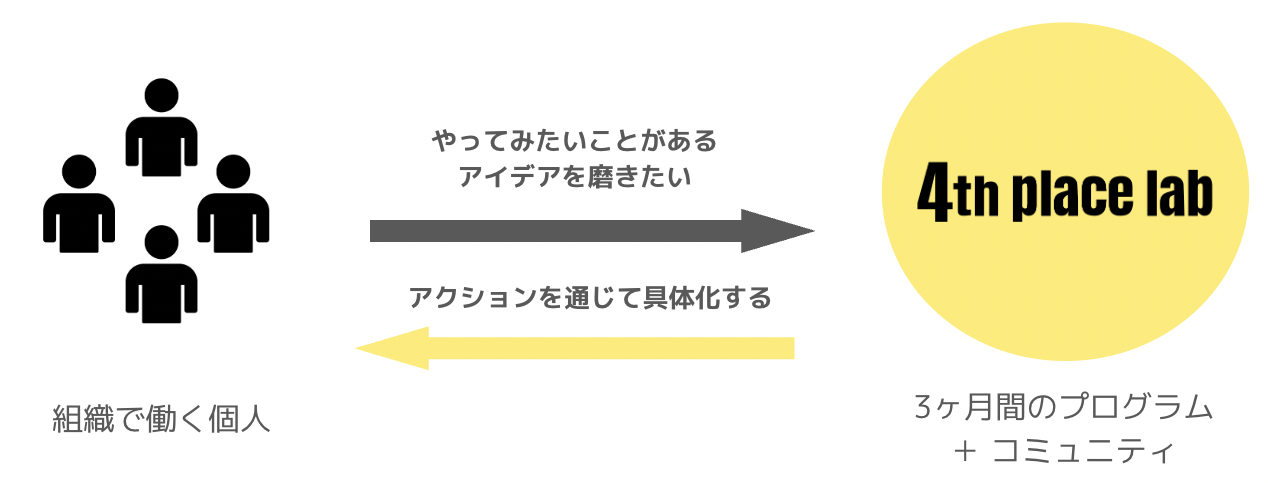 そして今年4月より、「4th place lab」は新たに企業との連携をスタートします。参加者は毎週オンラインで、アイデア出し・実践・相互メンタリングを繰り返し、3ヶ月間で個人のプロジェクトの立ち上げを目指します。