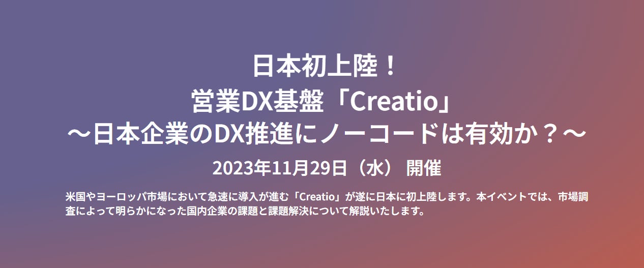 欧米最先端の営業DX基盤「Creatio」が日本初上陸!日本企業が抱える課題解決に向け解説イベント開催