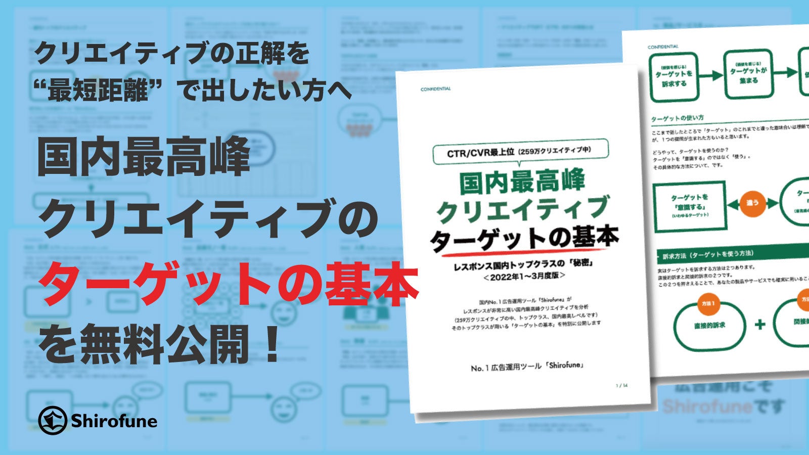 広告運用自動化ツール「Shirofune」は、広告運用者向けのお役立ち資料として『259万本を徹底分析!CTR・CVR最上位の国内最高峰クリエイティブの”ターゲットの基本” 』を無料公開します。