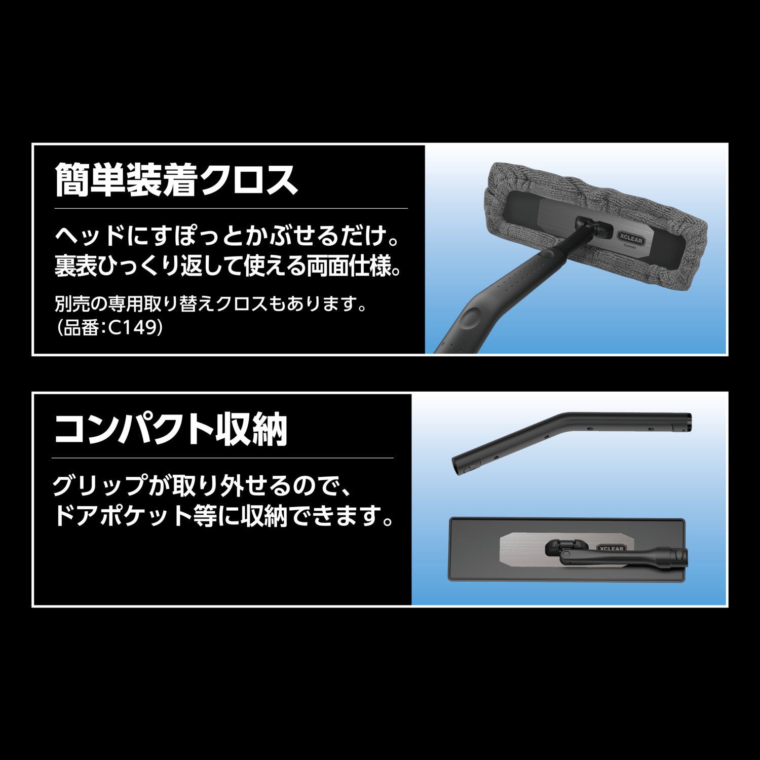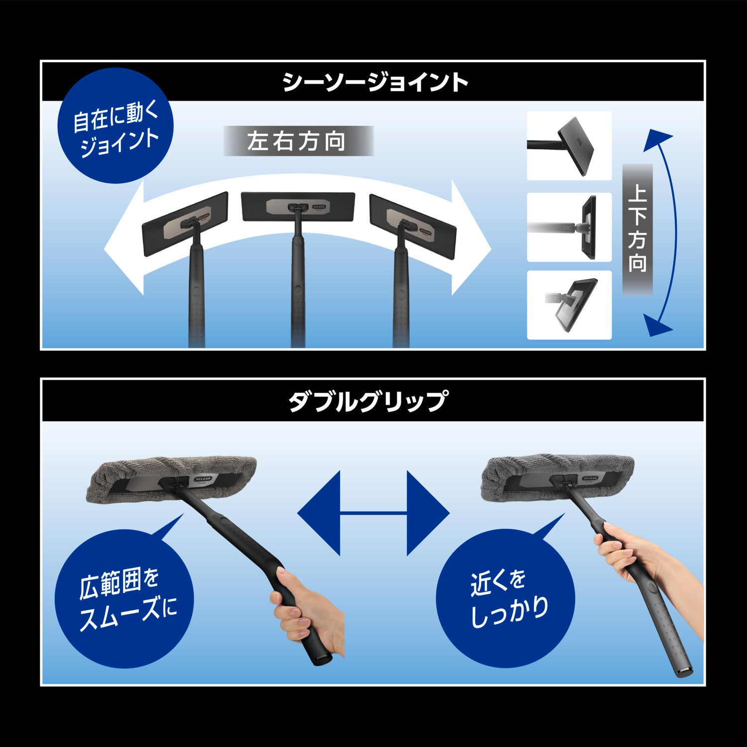 ・『ダブルグリップ』により近いところも遠いところも楽な姿勢で拭くことができます。車内の内窓が360°キレイに