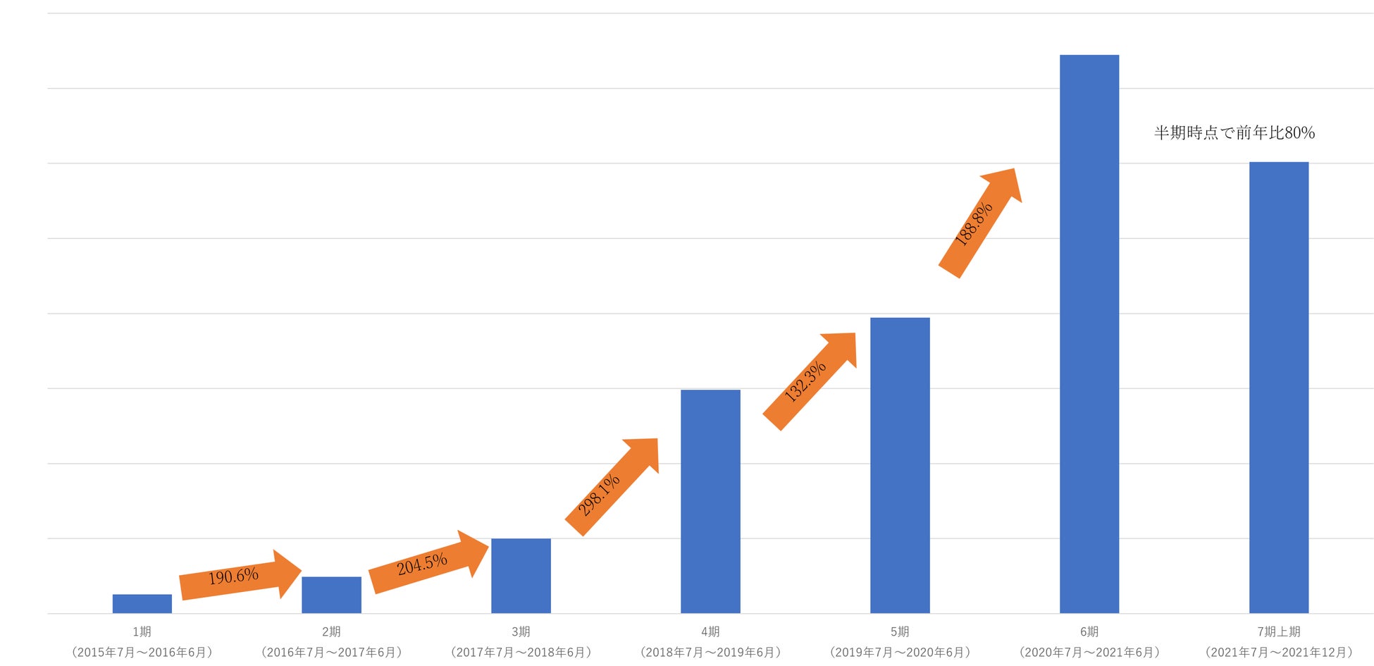 2021年6月~11月の6カ月の売上は、2020年6月~2021年5月の1年間の売上の113%となり、半年間で1年分を超える売上を記録しました。