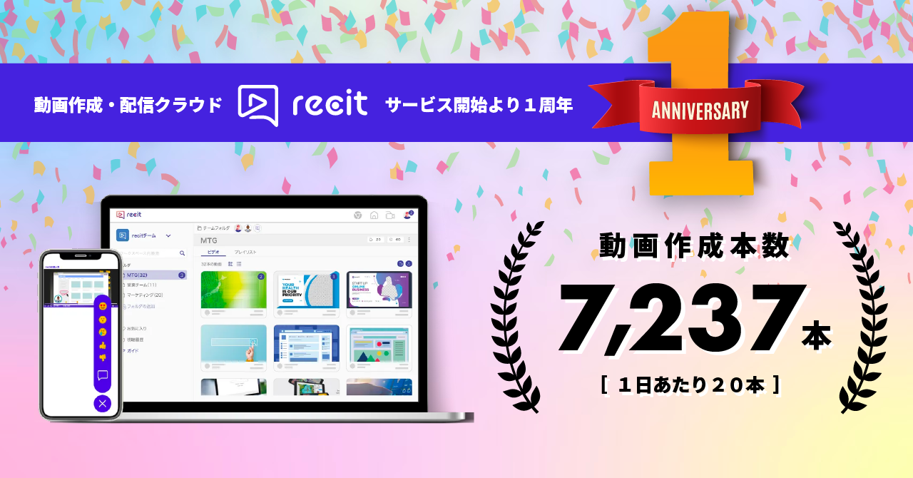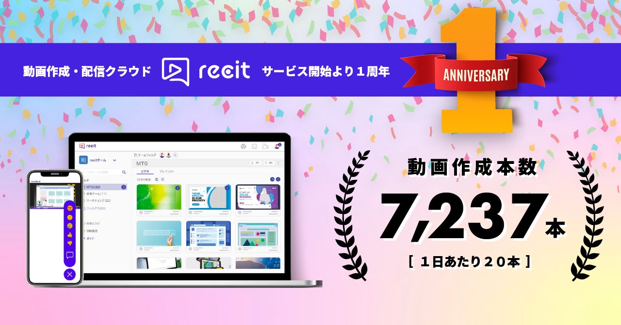 動画作成・配信クラウド「recit」リリース1周年。「伝わりやすい」動画で286日分のコミュニケーションを効率化。累計動画作成数は7,237本。