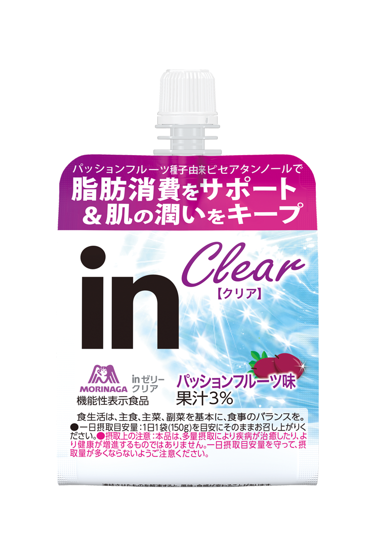 そこで、肌の乾燥が気になる方の肌のうるおいを守る機能、また、日常生活(安静時や日常活動時)のエネルギーとして、脂肪を消費しやすくする機能が報告されている、当社独自素材のパッションフルーツ種子由来ピセアタンノール配合の「inゼリークリア パッションフルーツ味」を開発しました。