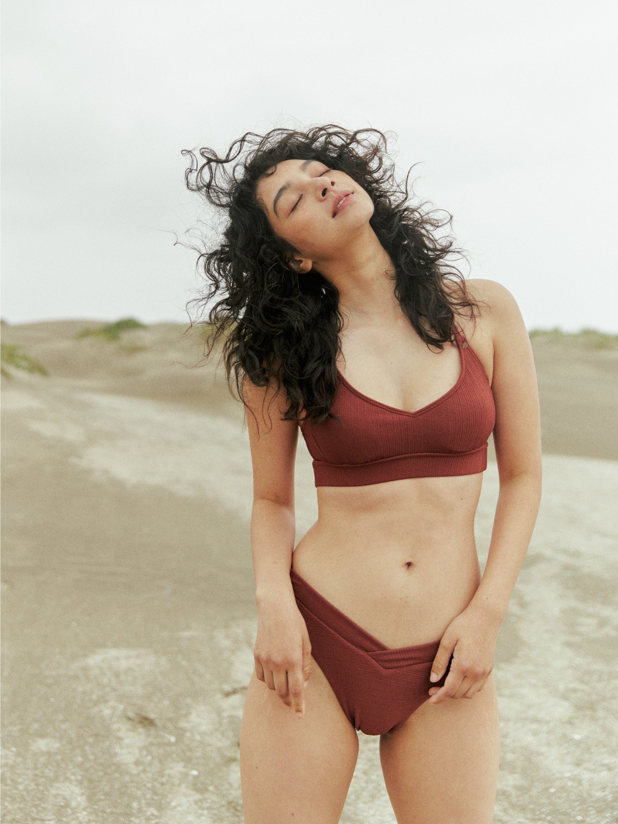 「Coral collection」のスイムウェアは、廃棄された生地や糸を回収し再生成された、リサイクルナイロン素材を使用。カバーアップシャツは、農薬や肥料などを細かく管理し、有機栽培で作られた、人にも環境にも優しいオーガニックコットンを使用しています。