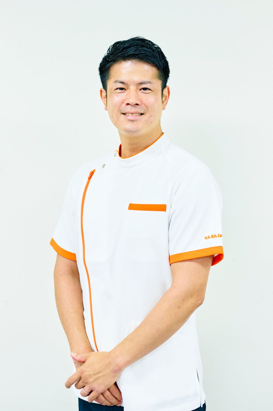 カラダファクトリーが誇る整体師歴15年の経験を持つ技術者であり、技術コンテスト「匠の技コンテスト」でMVP賞受賞(*2)歴もある元土肥直弥(もとどい なおや)さんがオーナー兼店長を務めます。