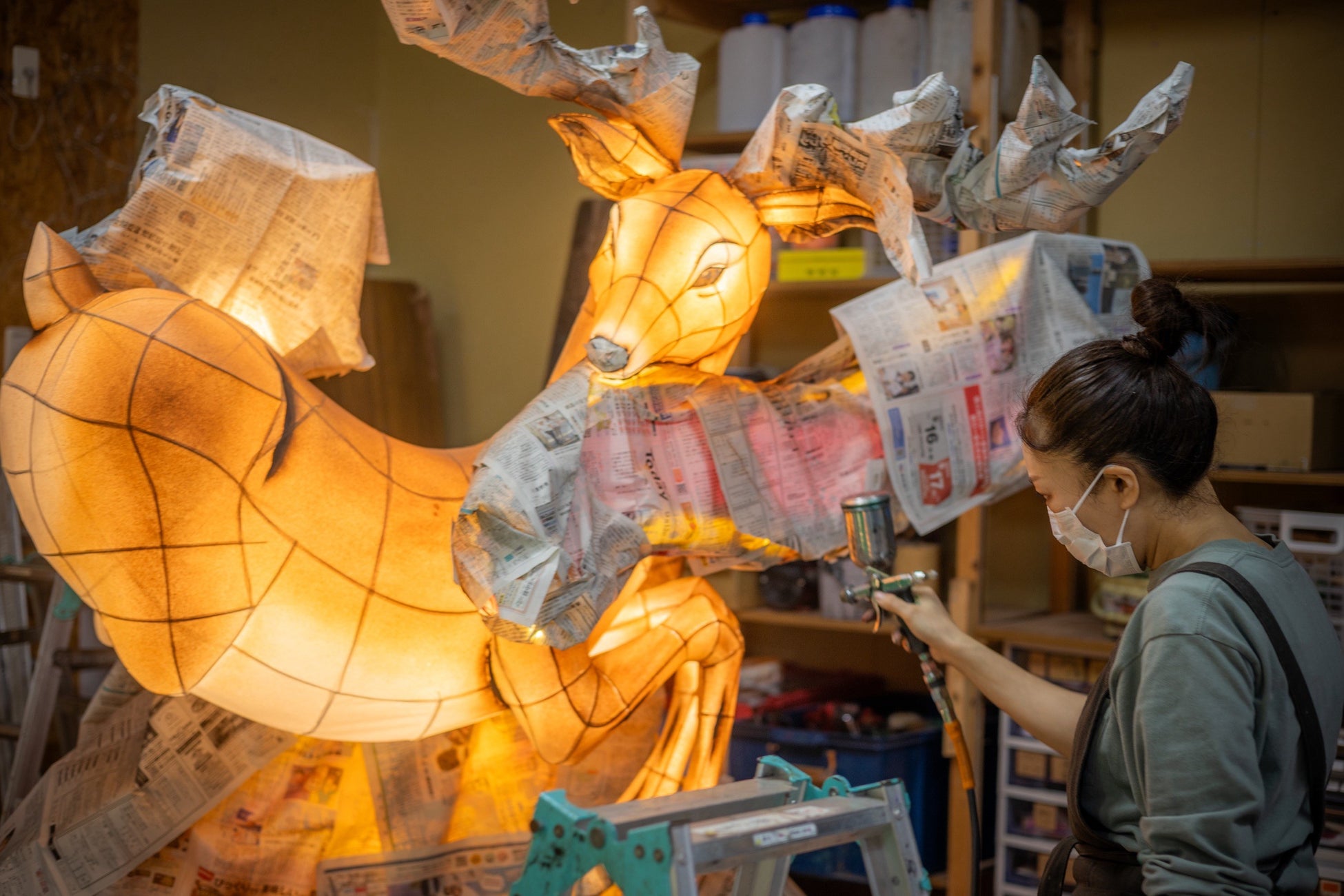 数年前、北村氏によるねぶたの技法を用いた造形作品に魅了されたホテルスタッフが、シャングリ・ラ 東京でも彼女が作るクリスマスデコレーションをぜひとも飾りたいという熱意で、コンタクトを取ったところから始まったプロジェクト。このクリスマスねぶたはデザインも含め、北村氏が一から携わり、シャングリ・ラ 東京のためだけに作られたものです。