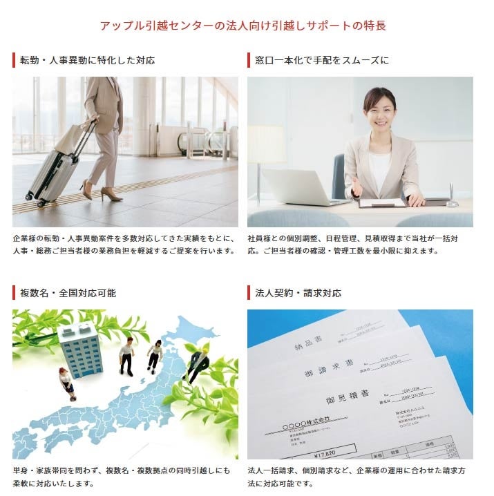 株式会社アップル(本社:東京都中央区、代表取締役:文字放想、以下「アップル」)は、企業の転勤・人事異動に伴う引越し手配の課題を解決するため、「法人パートナー登録(優先予約枠の確保)」受付を本格開始いたします。