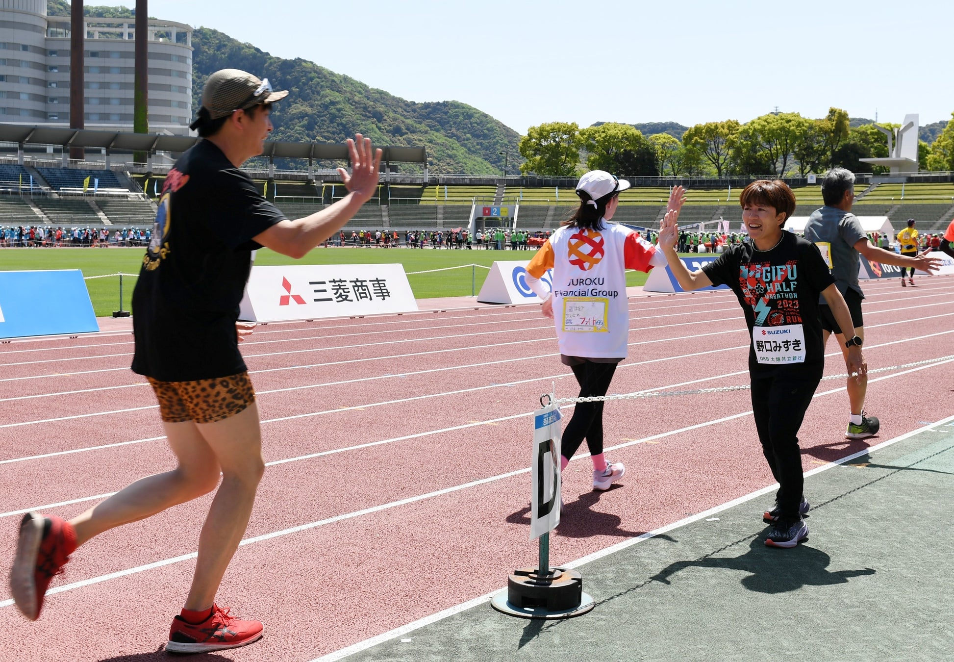 ぎふ清流ハーフマラソンには私も毎年、参加していますが、(岐阜には)音楽やおいしいものがたくさんあります。私も踊りながら応援しています。ぜひ、来てください。待っていますよー。