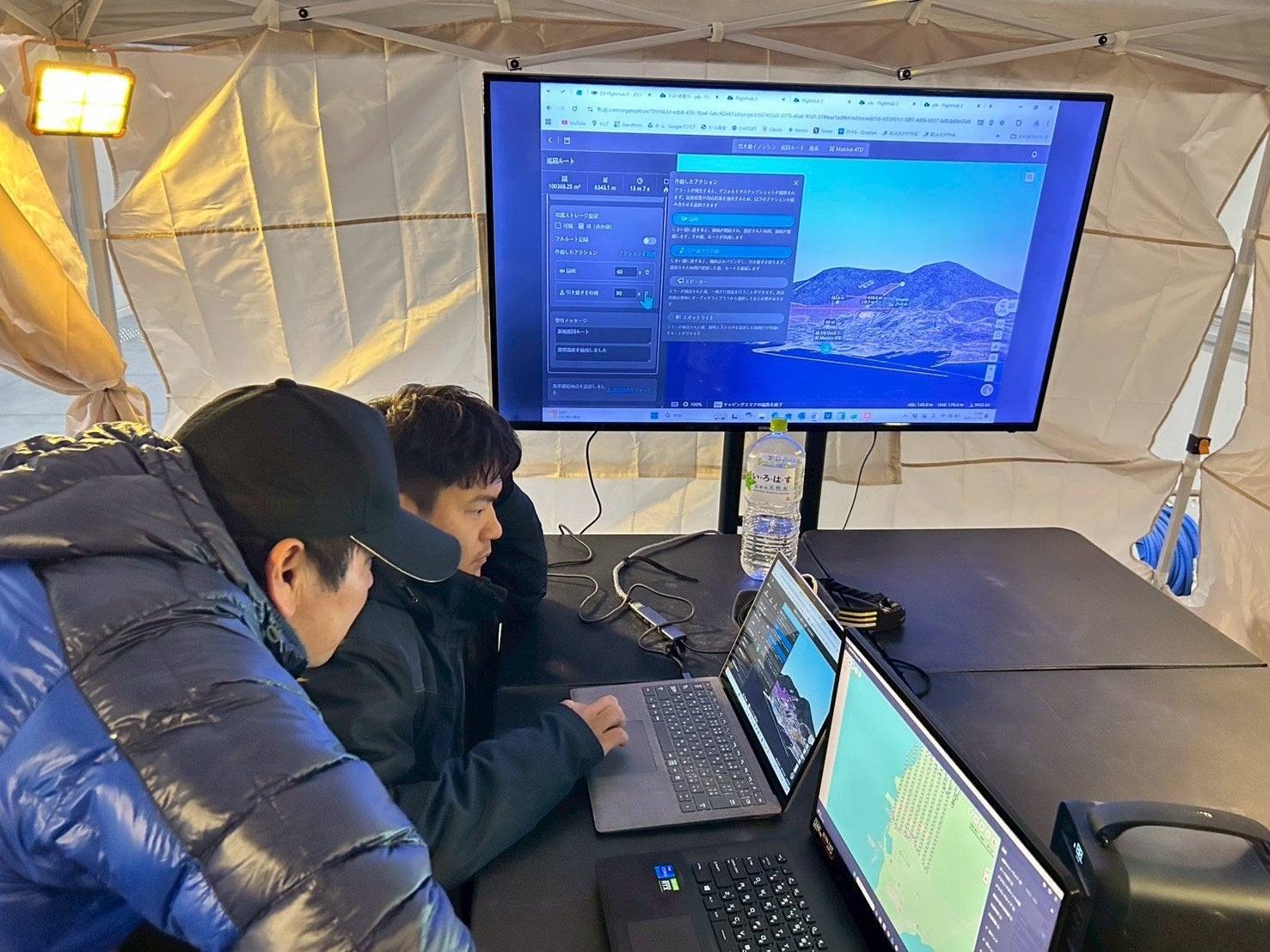 捜索に最適な飛行高度・飛行速度の検証 大型モニターを使用した分割画面による確認手法 日中と夜間での捜索・撮影技術の違いを体験
