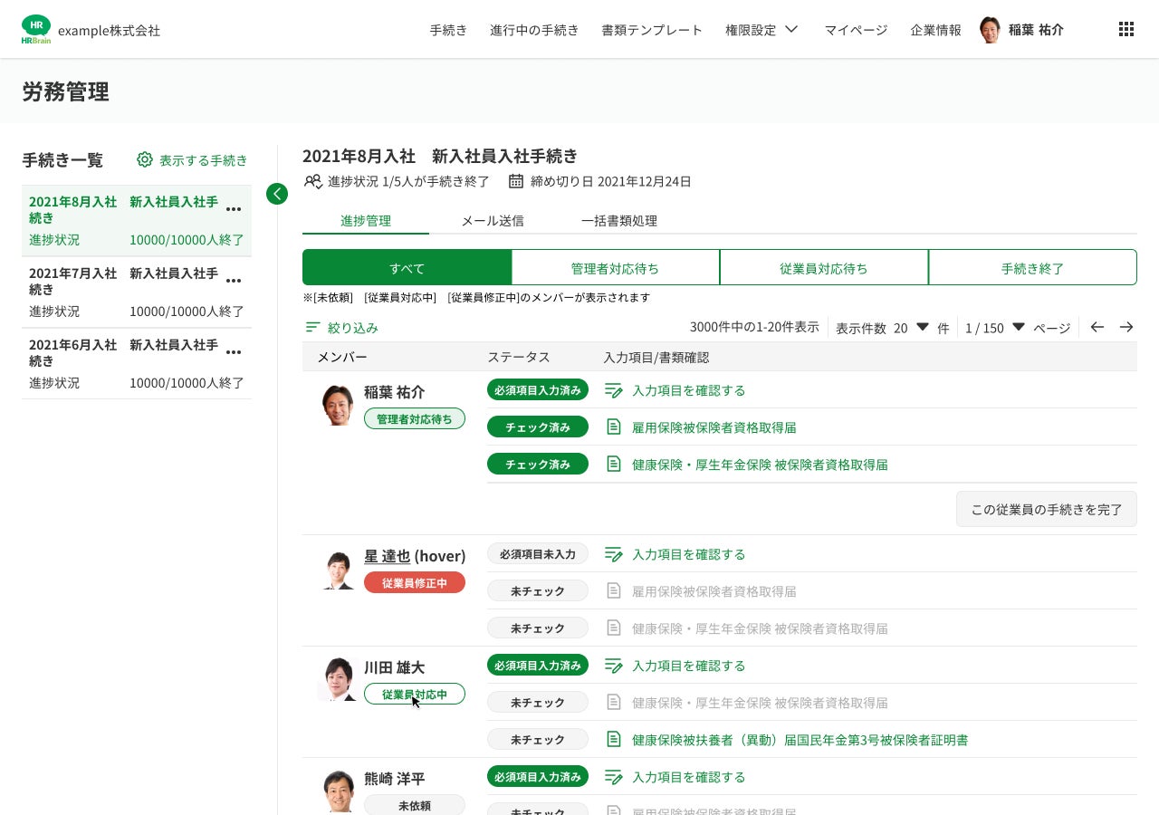 (2)従業員の法的書類などの提出状況・確認状況をすぐに把握、催促することも可能