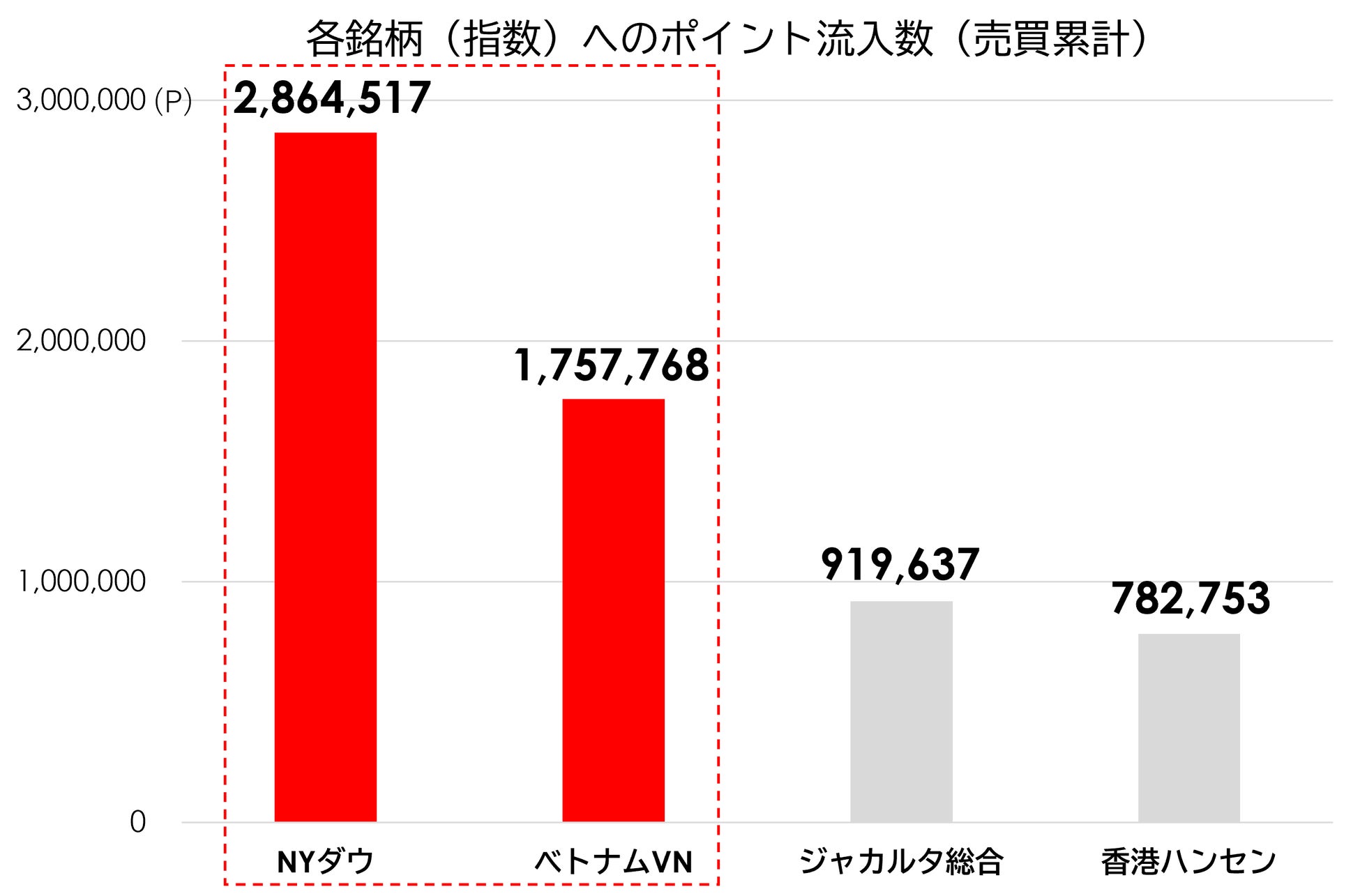 ◆キャンペーン期間中の各銘柄(指数)へのポイント流入数(売買累計)と取引回数