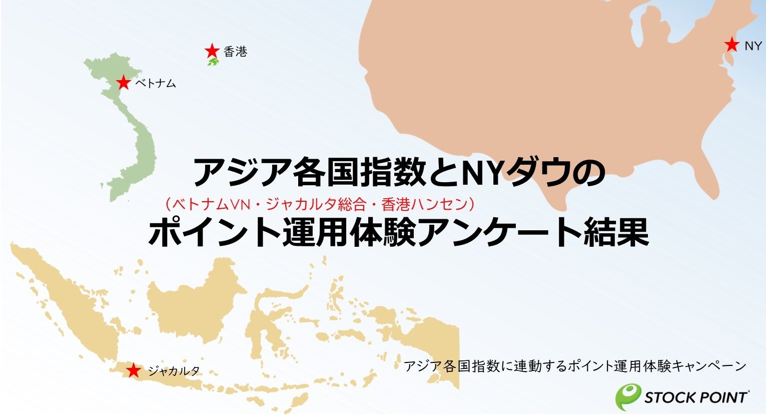 ポイント運用サービスを提供するSTOCK POINT 株式会社(本社:東京都港区、代表取締役社長 土屋 清美、以下「STOCK POINT」)は、アイザワ証券株式会社と行ったアジア各国指数をポイント運用で体験するキャンペーン(2024年1月15日~3月5日)の参加者を対象に、アジア株に関するアンケート調査を実施しました。