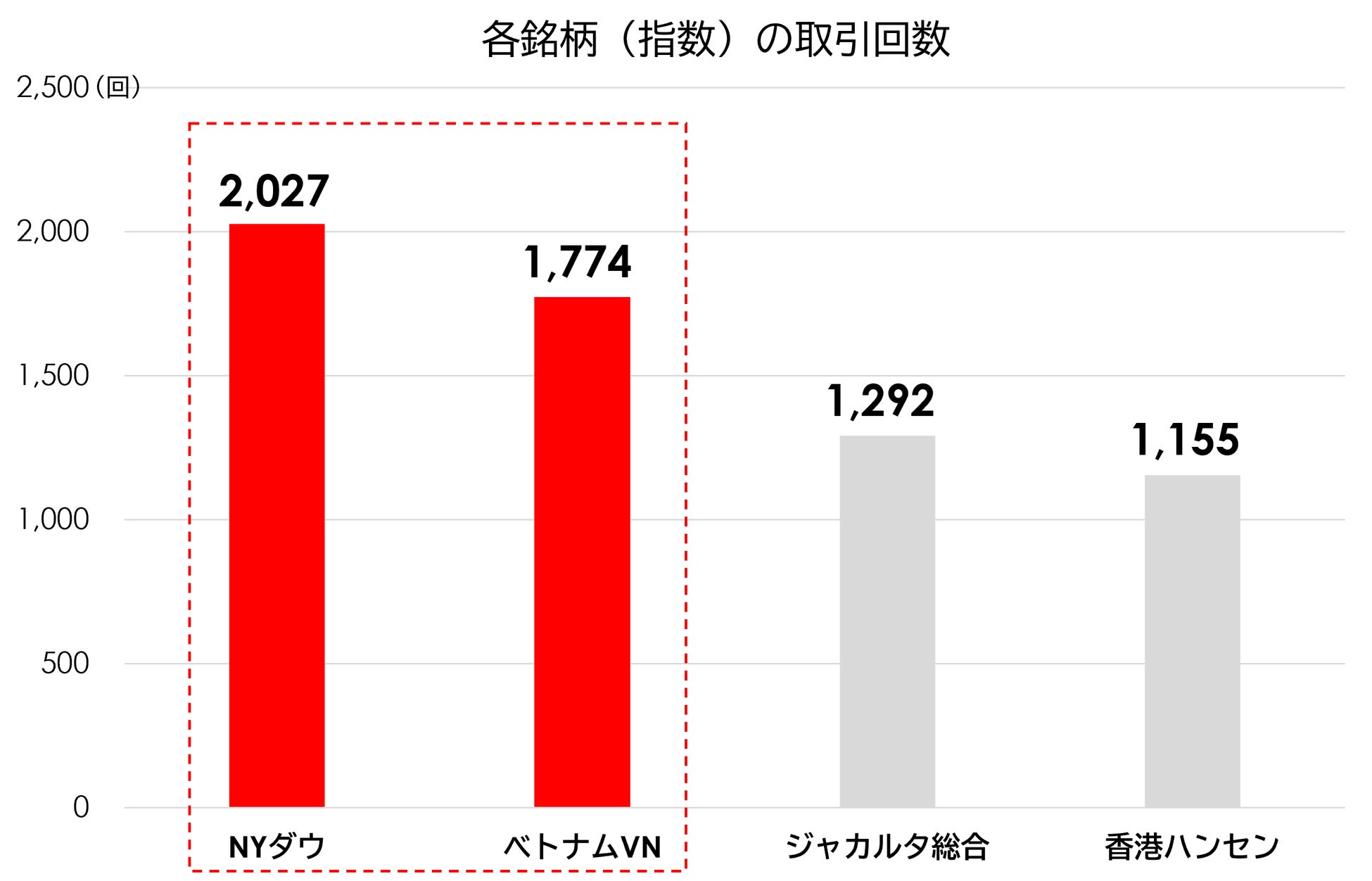 キャンペーン期間中のNYダウとベトナムVNの株価は右肩上がり!参加者は、株価の値動きに敏感!