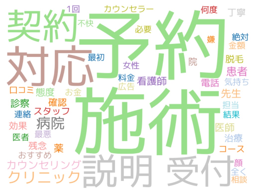 美容外科や医療脱毛、歯科矯正など、自由診療の美容医療に関するネット上での悪評・クレーム数が多くなっていました。悪評・クレームの内容は、予約に関するものが一番多く、予約したにもかかわらず診療を待たされたことや、医療脱毛の予約が取れないことに不満が多くなっていました。