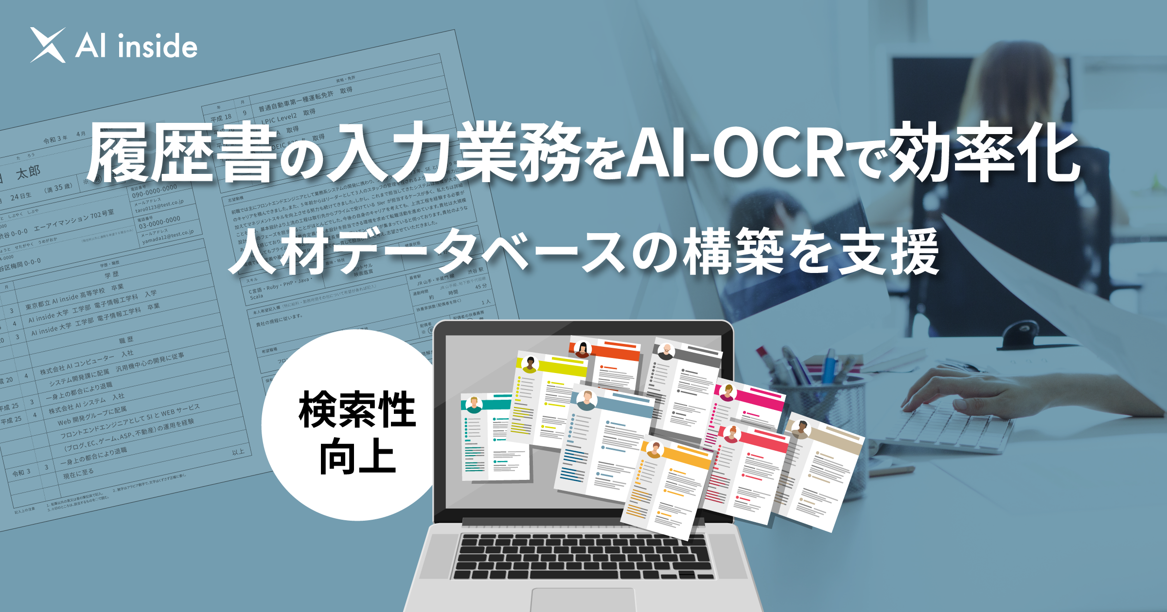 AIプラットフォームを提供するAI inside 株式会社は、「DX Suite」のAI-OCR機能を拡充し、読取可能な帳票として新たに非定型帳票モデル「履歴書」の読取に対応しましたことをお知らせします。
