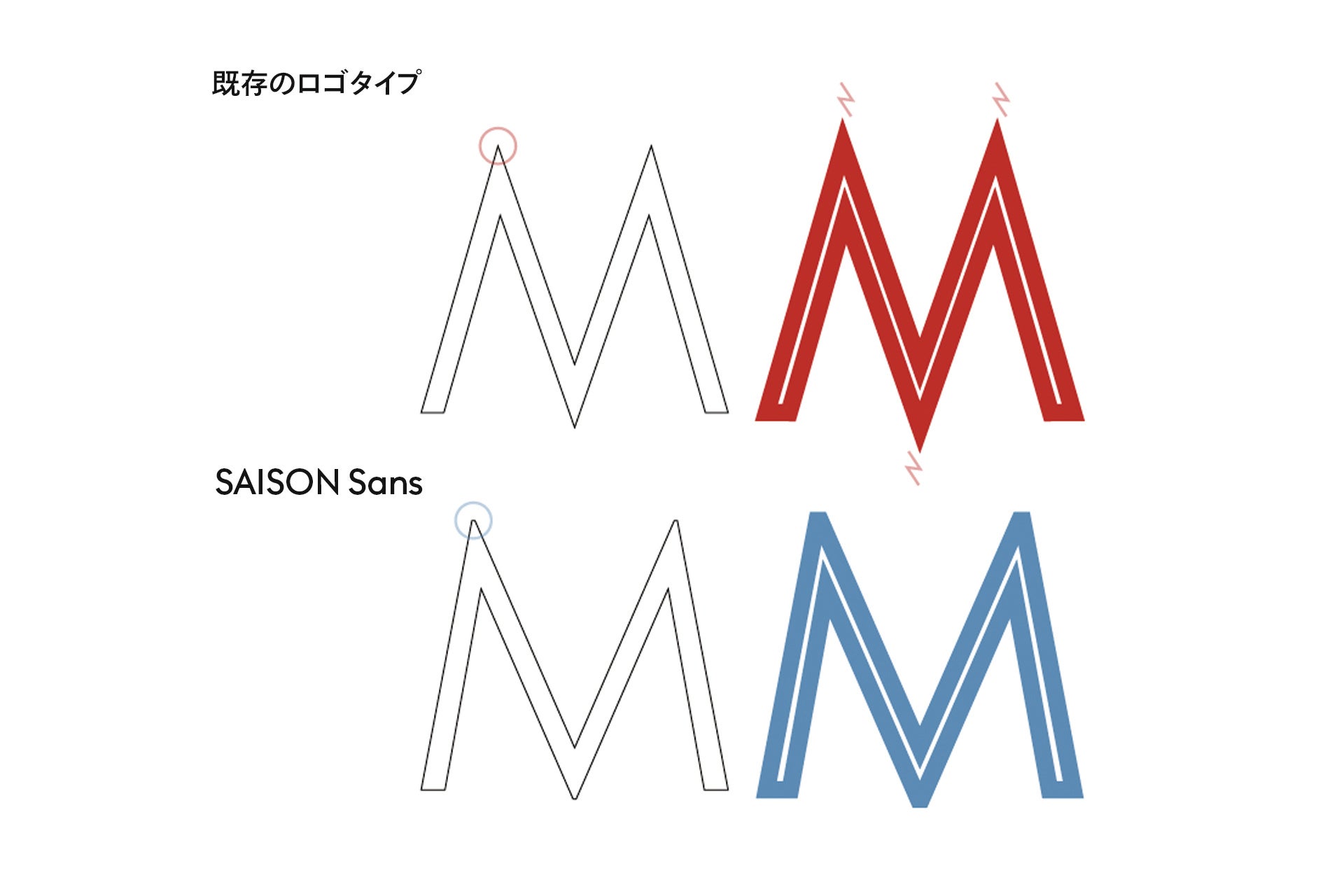 ヨアヒムははじめに、既存のロゴタイプの詳細な分析を行い、全文字のプロポーションの見直しを開始。Mなどの尖ったオーバーシュート※をわずかに面取りする、視覚的な錯覚を考慮に入れた微調整を実施する、アウトラインをなめらかにするなどデザインを施しました。