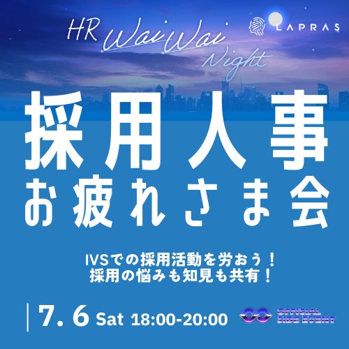 IVSでの最終日に「採用」に関わる人事・経営者・CHROの方などがしっぽりと参加できる慰労会「HR WaiWai Night」を開催します。IVSで採用活動を頑張った人事や経営者同士でお互いの頑張りを褒め合いましょう。