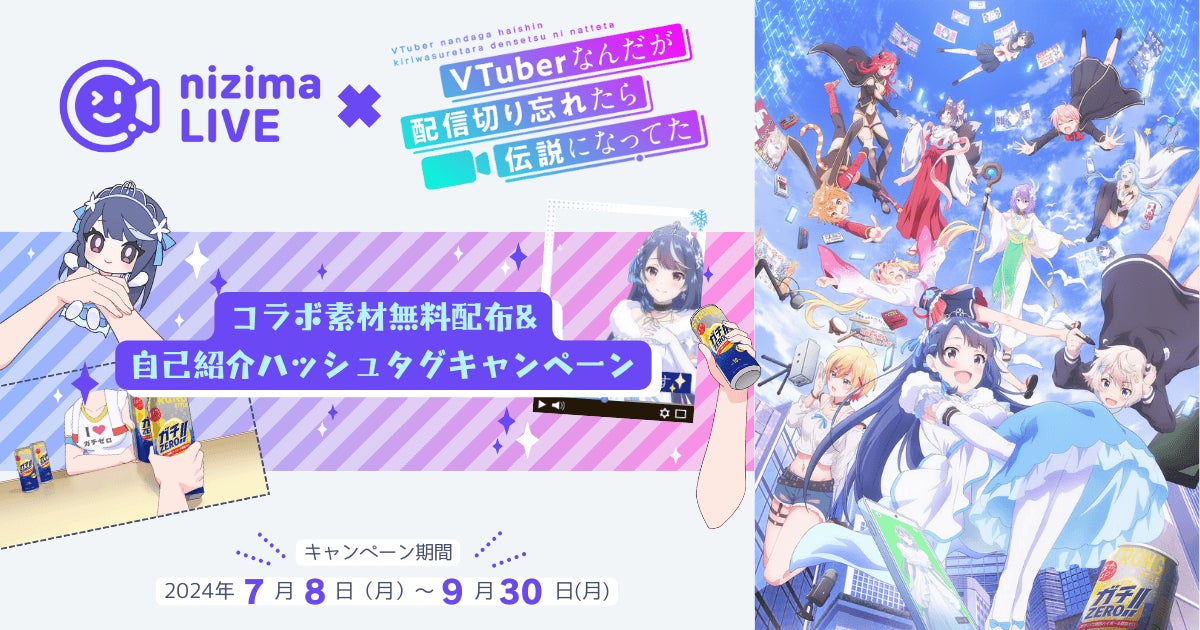 2Dイラストに立体的なアニメーションを加える表現技術「Live2D」の開発およびイラスト/Live2Dモデルのマーケット「nizima(にじま)」やフェイストラッキングアプリ「nizima LIVE(にじま らいぶ)」の開発・販売・運営を行う株式会社Live2D(本社:東京都新宿区、代表取締役:中城哲也、以下、Live2D社)は、2024年7月8日より、TVアニメ「VTuberなんだが配信切り忘れてたら伝説になってた」とのコラボ素材配布およびVTuber自己紹介ハッシュタグキャンペーンを実施します。