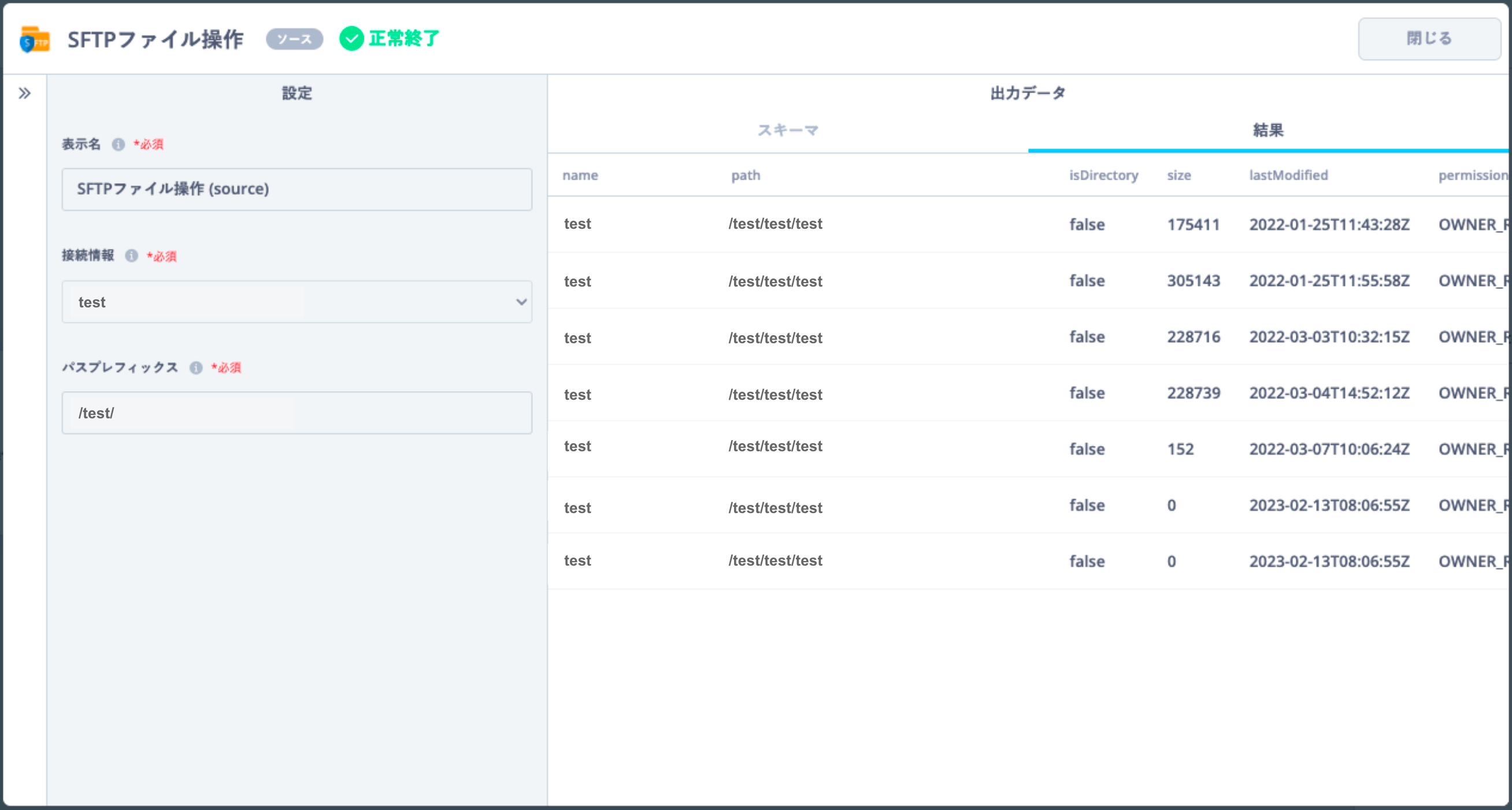 3. データ転送元、データ転送先にSFTPファイル操作を追加