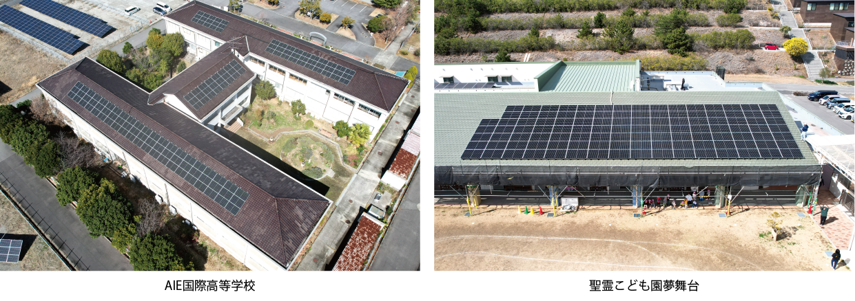 「AIE国際高等学校」に50kW(再エネ転換率※4:72%)、「聖隷こども園夢舞台」に42kW(再エネ転換率:64%)の太陽光パネルを屋根上に設置し、発電した電力はそれぞれの施設で自家消費されます。