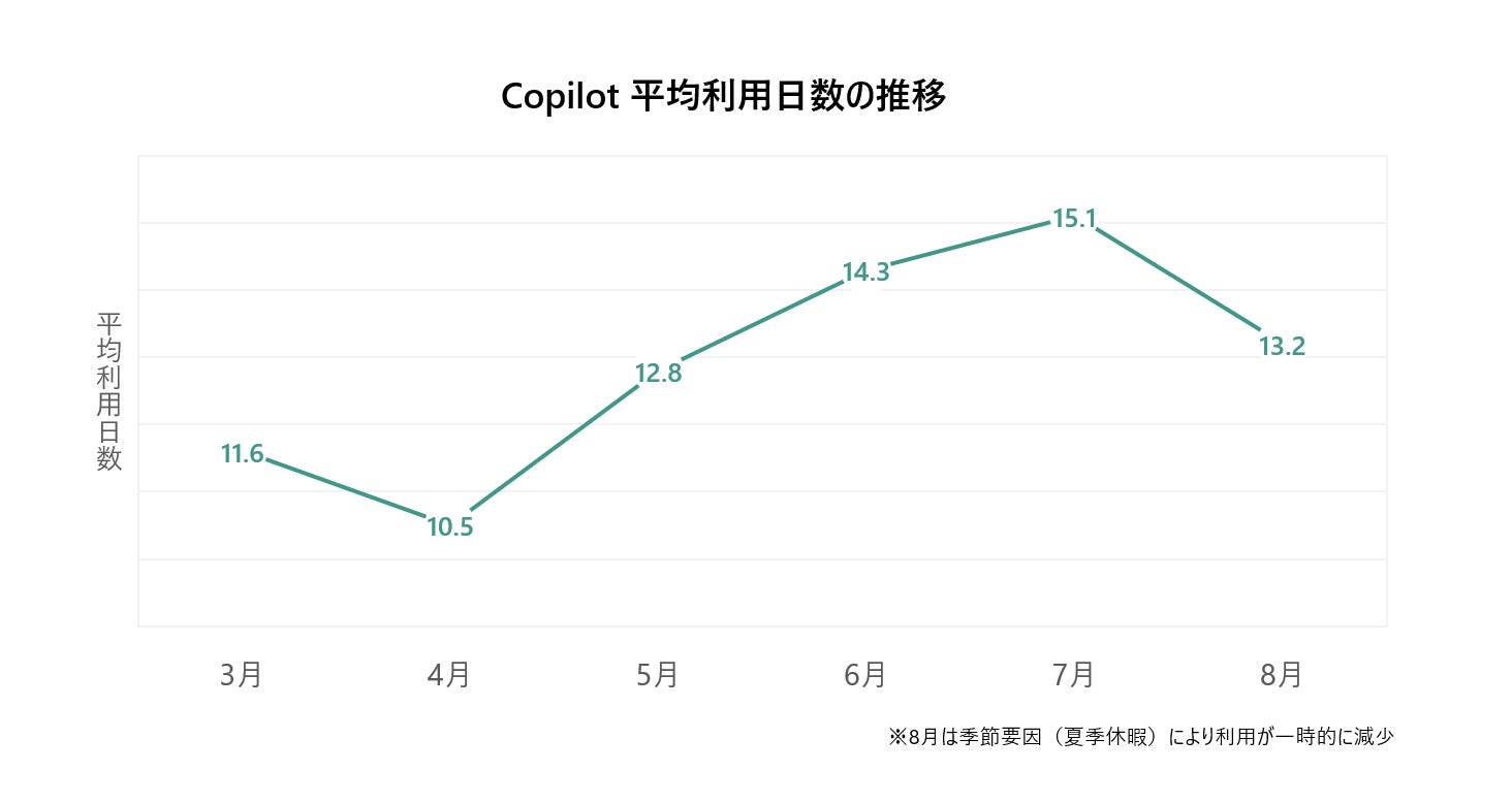 さまざまなご支援を展開した第2期トライアル期間(2025年3月~7月)の総括として、日常業務として Copilot が活用されていることが確認されました。