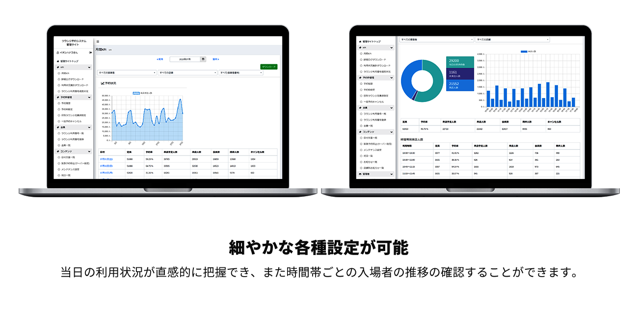 ③ 混雑状況の確認・利用状況集計等の多店舗管理に最適化した管理サイト