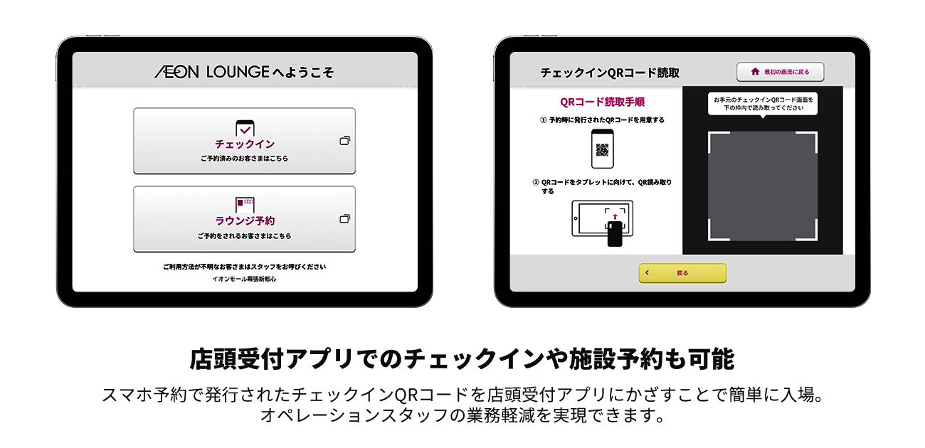 ② 店頭受付用iPadアプリケーションからの施設利用予約・チェックイン機能