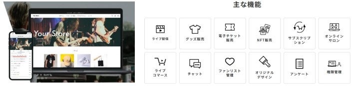 エンタメの自社サイト構築を支援するのが、エンタメEC構築クラウド「MOALA Live Store」です。ライブ配信やNFTなどの最新エンタメコンテンツから、グッズ、チケット、ファンクラブなどといった主力コンテンツまで、あらゆるエンタメを、自分のお店でまとめて販売できるようになります。