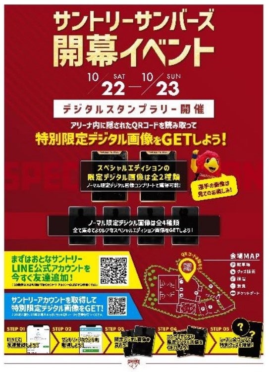 10月22日(土)、23日(日)に開催されるサントリーサンバーズホームゲームV・レギュラーラウンド来場者に対し、NFTスタンプラリーイベントを実施いたします。スタンプラリーで取得したNFTは自動的にファンのマイページにコレクションされるため、煩雑な手続きもなく、これまでハードルが高いと思われていたNFTを手軽に保有いただけます。