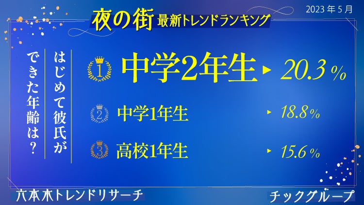 更に「初めて彼氏ができた年齢」を聞いてみると「中学2年生」が20.3%で1位、「中学1年生」が18.8%の2位という結果となり、高校1年生までに半数以上のが“初めて彼氏” ができている結果となりました。