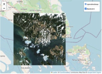 回答「2020年1月のシンガポール海域付近の様子を見せることができます。以下は、シンガポール海域付近の位置に撮影された衛星画像です。」